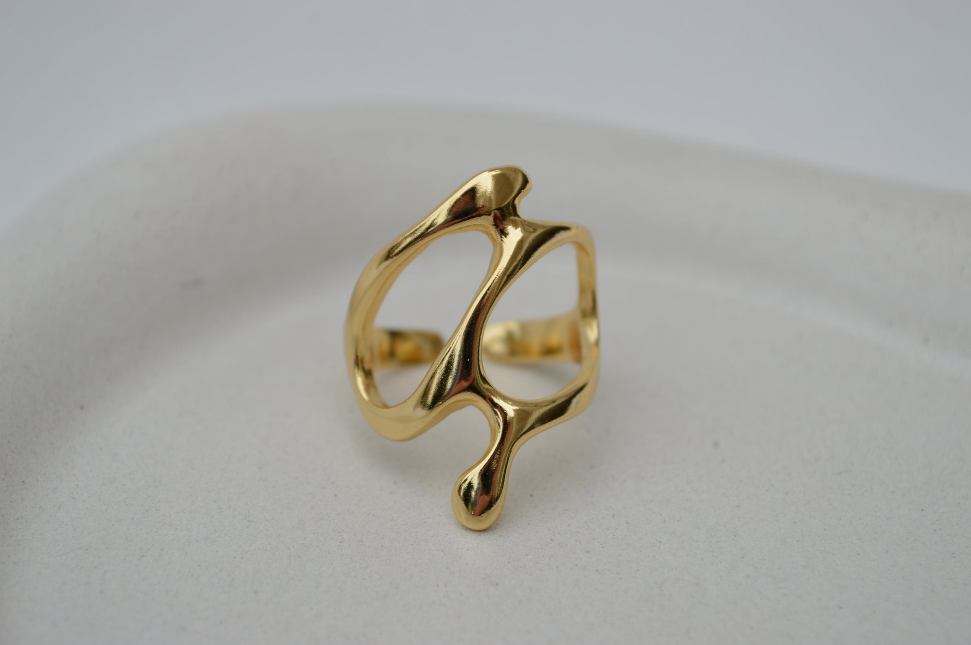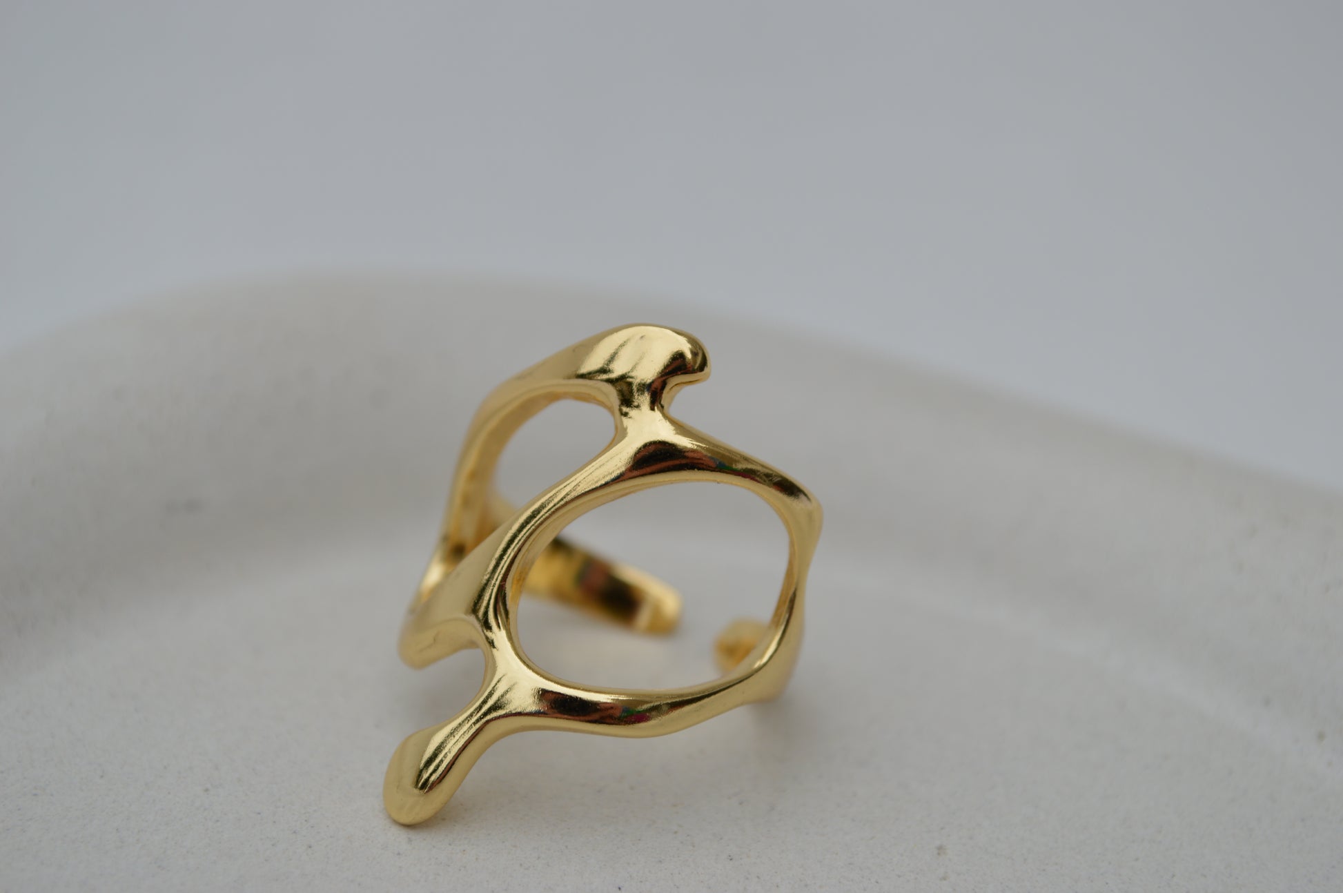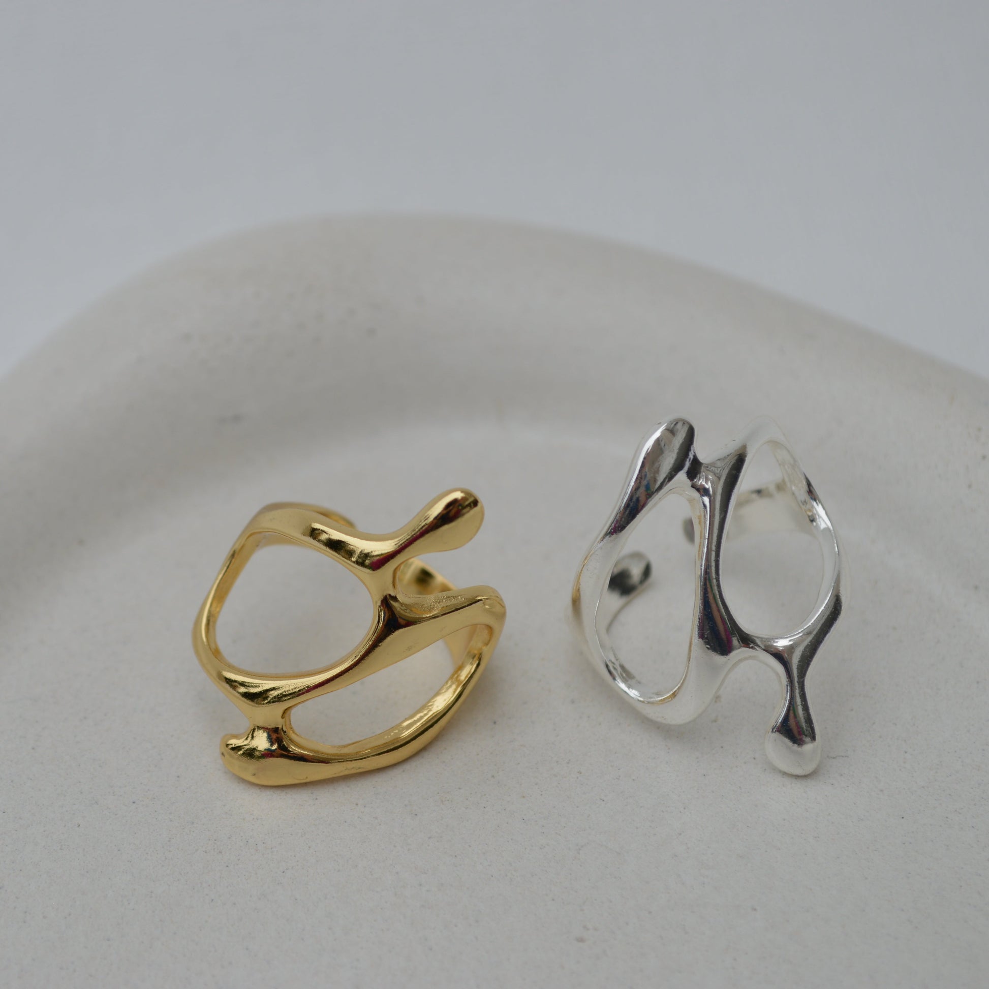 O Anel Glitch celebra o inesperado e o imperfeito como parte essencial da criação, ele tem um desenho fluido e irregular inspirado nas falhas digitais que revelam novas formas de beleza.