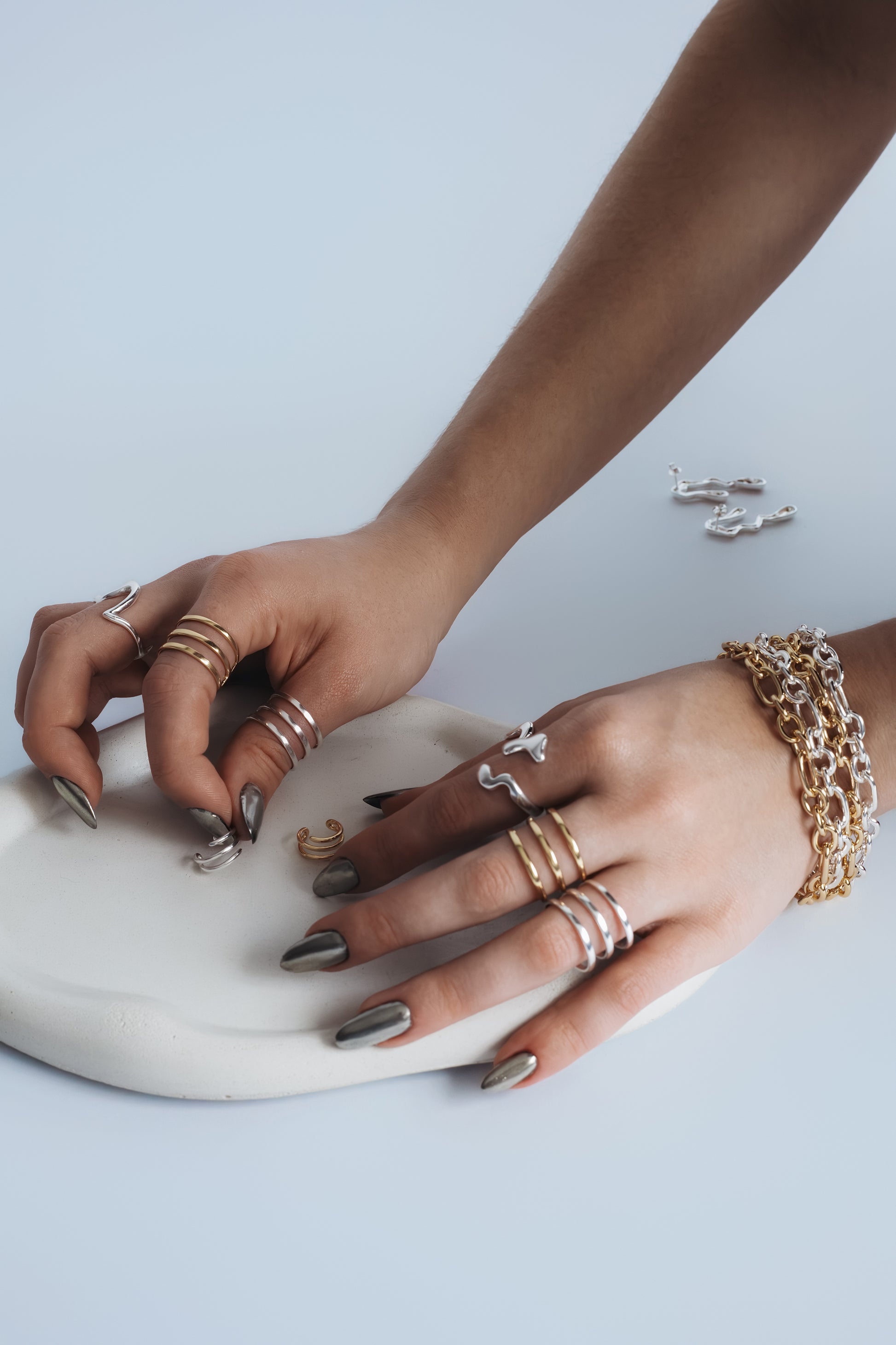 O Earcuff Circuito traduz a estética dos caminhos elétricos em forma de joia: linhas contínuas, curvas precisas e uma geometria que se dobra em movimento.